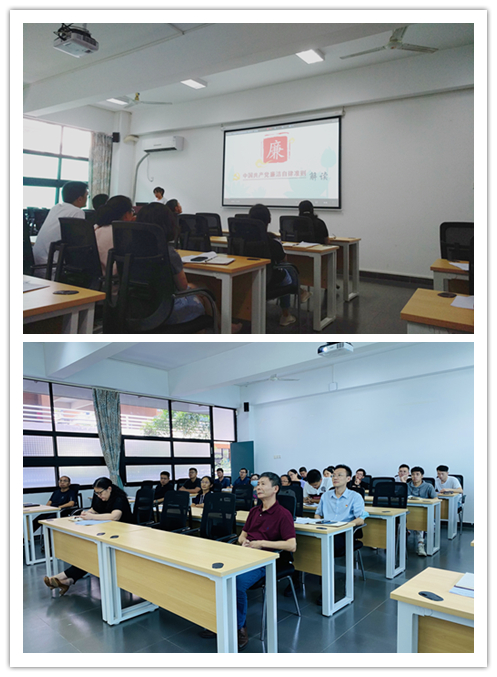会上,学院党委书记林军围绕“严守政治纪律,践行“两个维护””主题纪律教育活动月,强调学院领导班子发挥好带头作用,班子成员之间开展谈心提醒活动,增强党纪党规意识;各支部运用“三会一课”等形式,抓好党员干部的教育学习;各年级辅导员组织学生学习《广东工业大学学生手册》,开展校规校纪的教育。会上还组织观看了《中国共产党廉洁自律准则》解读读片。